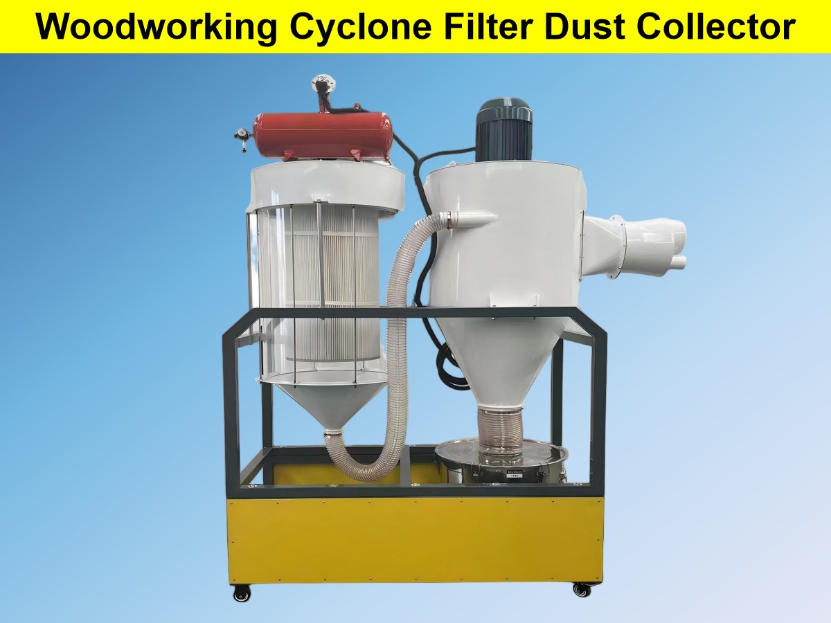 Støvsamlere til træbearbejdning af cyklonfilter er en kombination af cyklonseparation og filterpatronfiltrering. De kombinerer fordelene ved cyklonstøvsamlere til håndtering af højkoncentreret groft støv med højpræcisionsegenskaberne ved filterpatronstøvsamlere til filtrering af fint støv. Specielt designet til den brede partikelstørrelsesfordeling af savsmuld og træpulver i træbearbejdningsværksteder, er deres støvfjernelseseffektivitet langt højere end for enkelt-enhedsudstyr.